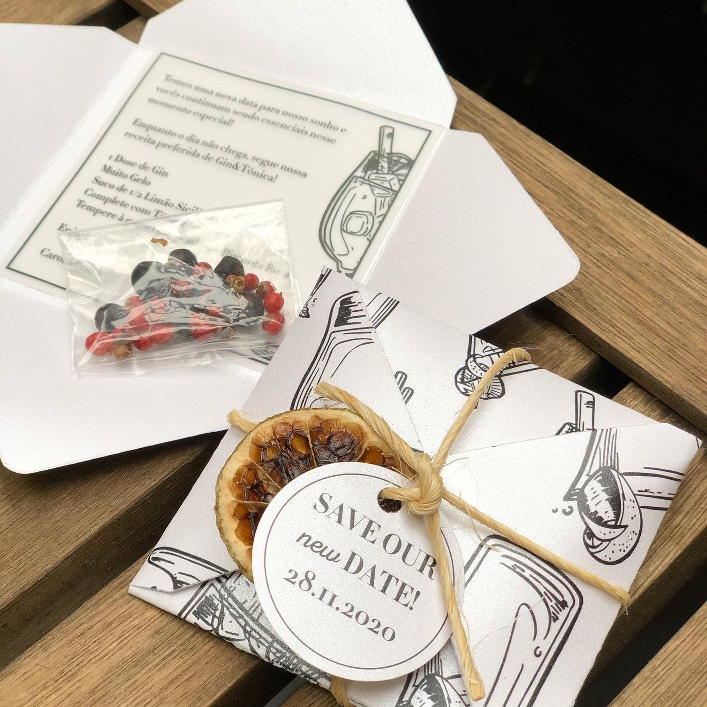 São envelopes personalizados em papel com 5 amêndoas dentro. Serve como lembrança de casamentos e chás de bebê.